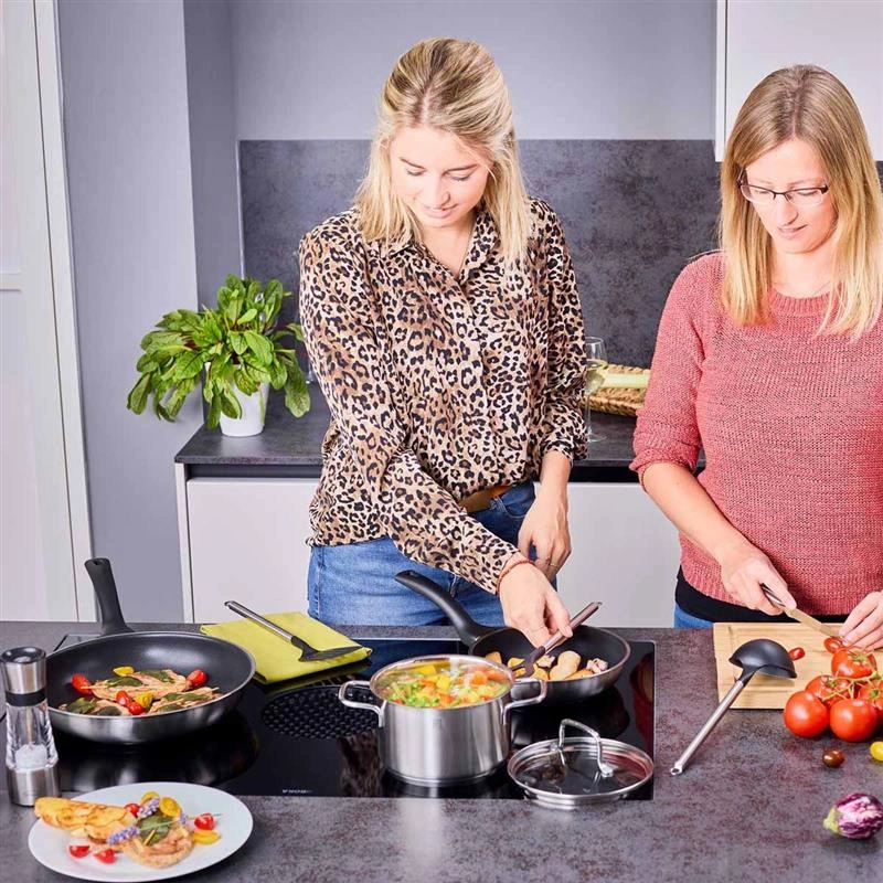 Garnki i patelnie RÖSLE „Basic Line” można używać na wszystkich typach kuchenek – czy to na kuchence elektrycznej, płycie ceramicznej czy płycie indukcyjnej.