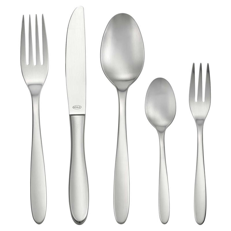 60 sztuk, dla 12 osób: 12 noży stołowych, 12 widelców stołowych, 12 łyżek stołowych, 12 widelczyków do ciasta, 12 łyżeczek do kawy