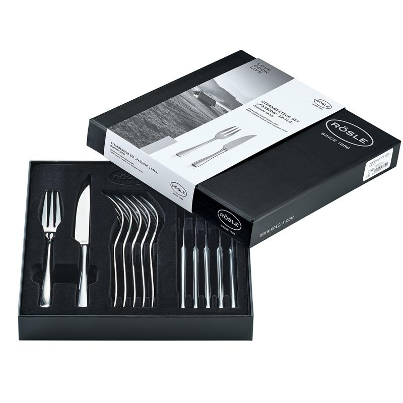 Składa się z 6 widelców do steków i 6 ostrych noży do steków