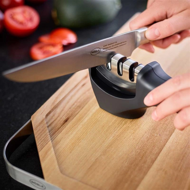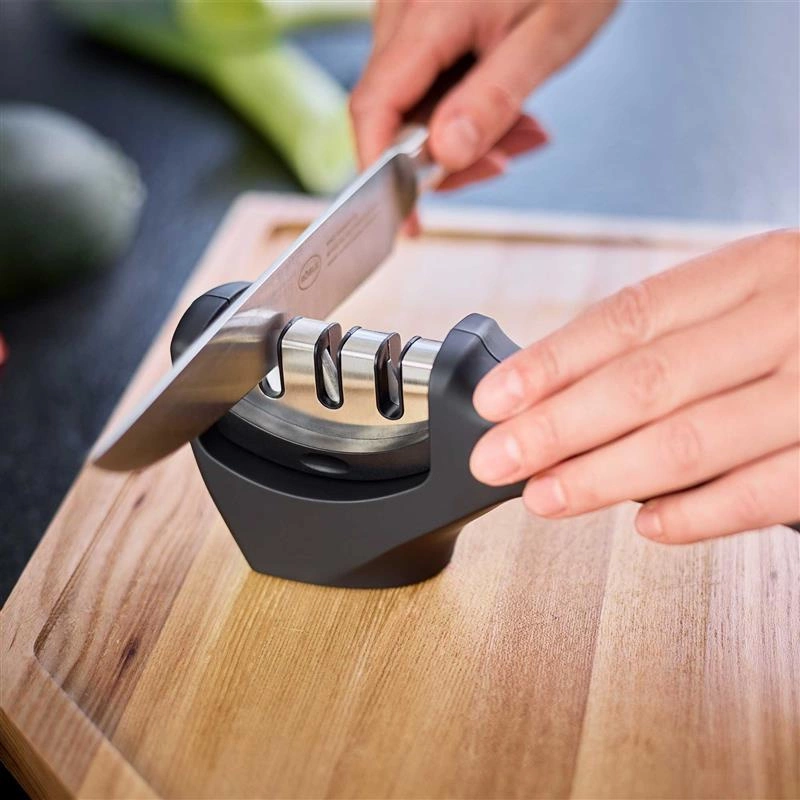 Dzięki 3-stopniowej ostrzałce utrzymanie ostrości noża szefa kuchni jest niezwykle łatwe i szybkie.