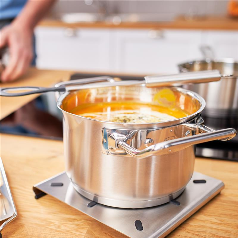 Solidne, proste uchwyty oddalone od garnka zapewniają pewny chwyt.