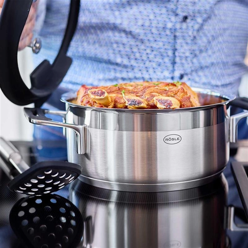 Garnek do gotowania, zaprojektowany z prostą elegancją i wyposażony w sprytne funkcje, oferuje pełen komfort i wszystko, czego potrzebuje współczesna kuchnia.