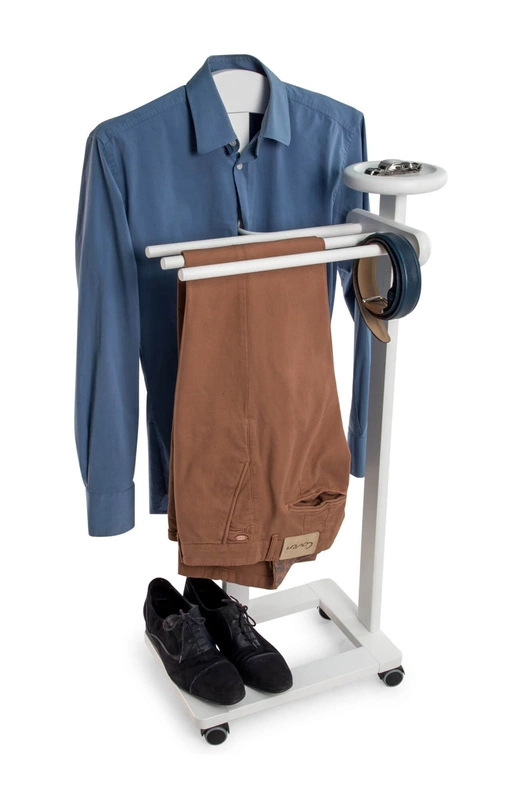 Wykonany z litego drewna bukowego zapewnia stabilność, pozwalając na przechowywanie odzieży w nienagannym stanie. Stojak składa się z wyprofilowanego wieszaka na koszulę lub marynarkę, trzech uchwytów na spodnie oraz półki do przechowywania biżuterii czy spinek do mankietów. Dzięki niemu z łatwością utrzymasz swój strój w idealnym stanie i gotowości do założenia następnego dnia. Dodatkowo ANTIMO posiada gumowe kółka, które umożliwiają jego bezproblemowe przemieszczanie między pomieszczeniami.