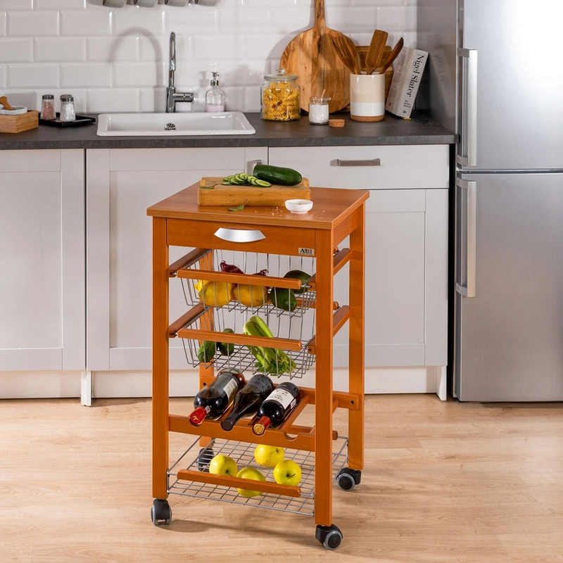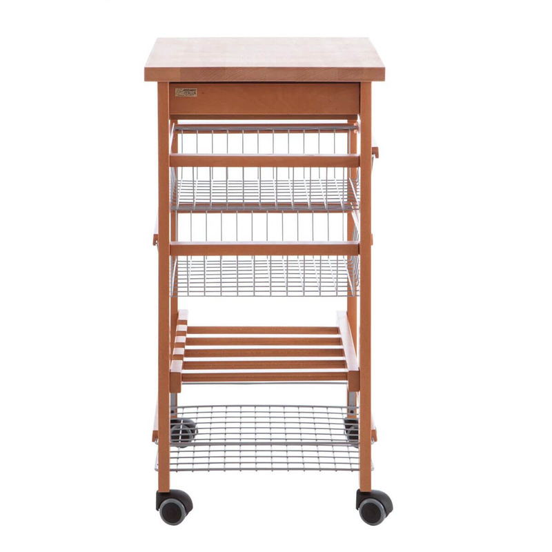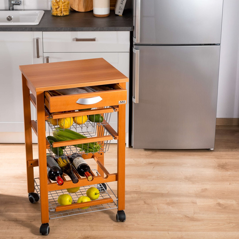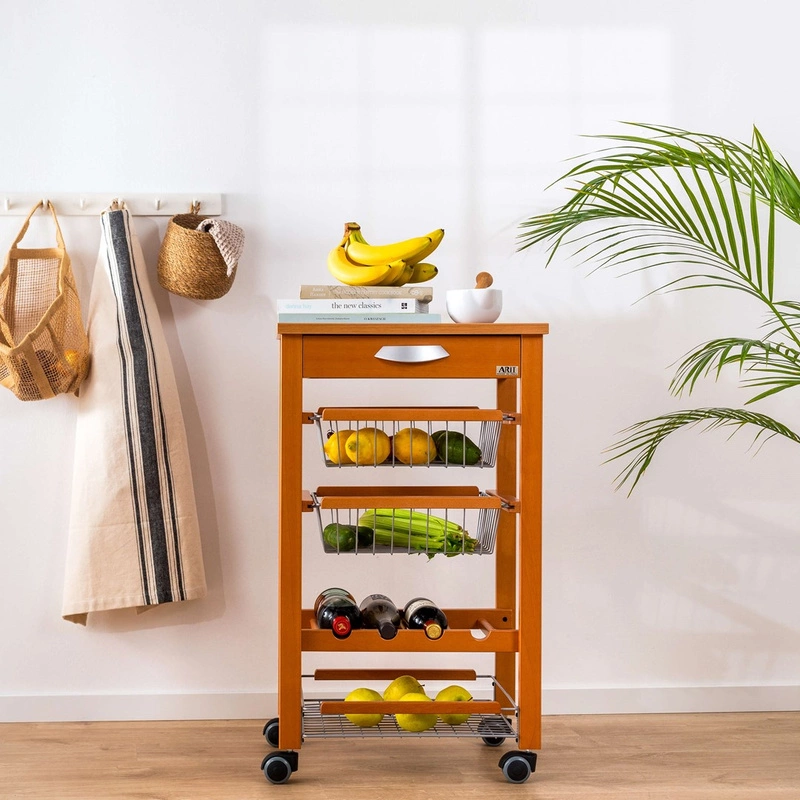 Elegancki wózek kuchenny ARTURO w kolorze drewna wiśniowego jest nie tylko praktycznym narzędziem do organizacji przestrzeni, ale przy tym stylowym elementem dekoracyjnym. Wykonany z solidnego drewna bukowego, gwarantuje trwałość na lata, co sprawia, że jest idealnym rozwiązaniem dla każdej kuchni.