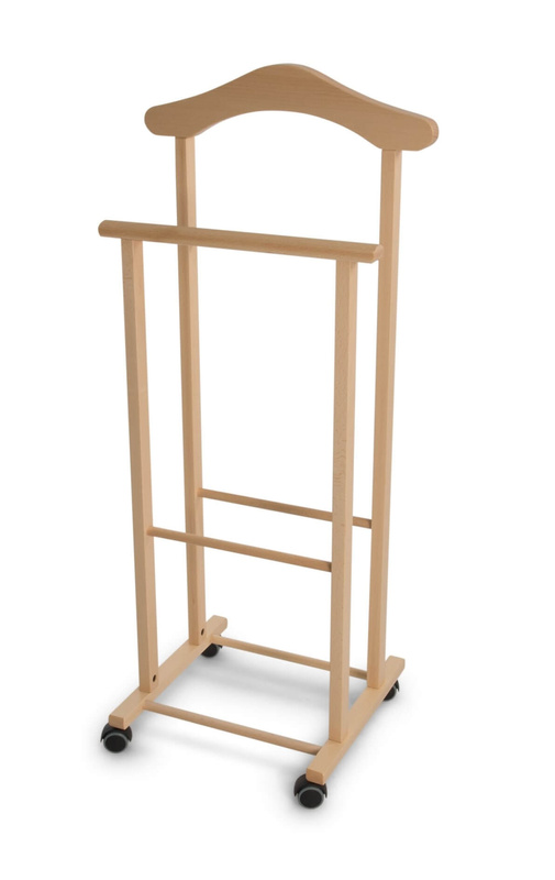 Wykonany z litego drewna bukowego zapewnia stabilność, pozwalając na przechowywanie odzieży w nienagannym stanie. Stojak składa się z wyprofilowanego wieszaka na koszulę lub marynarkę oraz uchwytu na spodnie. Dzięki niemu z łatwością utrzymasz swój strój w idealnym stanie i gotowości do założenia następnego dnia. Dodatkowo ATRI posiada gumowe kółka, które umożliwiają jego bezproblemowe przemieszczanie między pomieszczeniami, nie rysując przy tym podłogi.