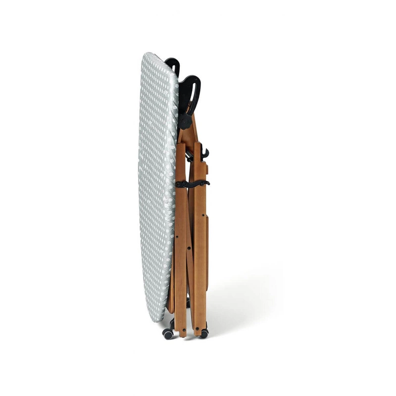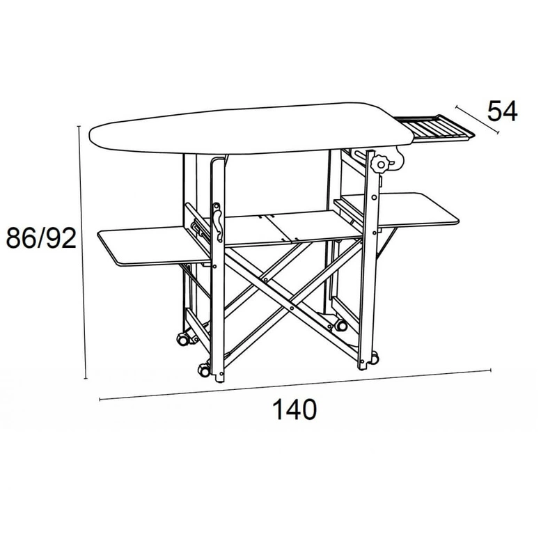 Deskę BRAVO charakteryzuje regulowana wysokość od 86 do 92 cm, co pozwala dostosować ją do Twoich indywidualnych preferencji. Duża powierzchnia robocza o wymiarach 115 x 54 cm zapewnia mnóstwo miejsca do prasowania różnorodnych tkanin, od koszulek po zasłony. Deska wyposażona jest w wygodny wysuwany uchwyt na żelazko oraz przestronne półki na pranie, co sprawia, że prasowanie staje się jeszcze bardziej efektywne. Dodatkowo, posiada obrotowe kółka, które działają wyłącznie po złożeniu, umożliwiając swobodne przemieszczanie po garderobie lub pralni.