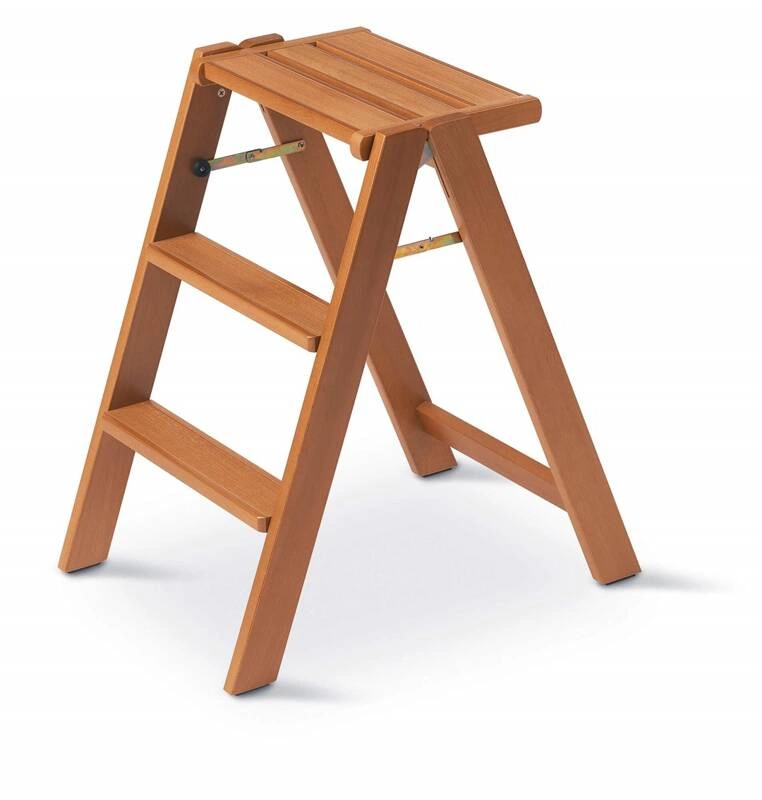 Drabinka posiada 2 antypoślizgowe stopnie wykonane z solidnego drewna bukowego, które zapewniają bezpieczeństwo podczas korzystania. Duża platforma umożliwia wygodne korzystanie przez dłuższy czas, co czyni drabinkę idealną także do czasochłonnych zajęć, jak malowanie czy sprzątanie. Gumowe nóżki zabezpieczają powierzchnię przed zarysowaniami. Dodatkowo, wygodny system rozkładania i składania gwarantuje łatwe przechowywanie i przenoszenie drabinki zależnie od potrzeb.