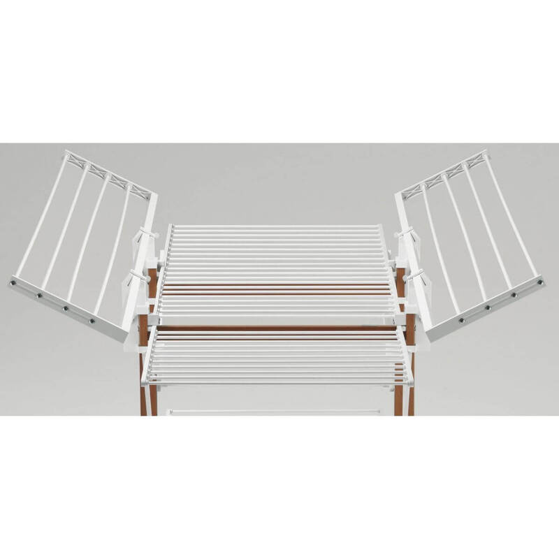 Nakładka oferuje 6.5 metra powierzchni do rozwieszania mokrych rzeczy. Dzięki niej, nawet po rozwieszeniu większej ilości odzieży, masz nadal wolne, dedykowane miejsce na wysuszenie pościeli. Z łatwością wysuszysz więc swoje standardowe pranie oraz większe elementy w tym samym czasie. Maksymalna wysokość od podłogi wynosząca 123 cm zapewnia wygodę użytkowania.