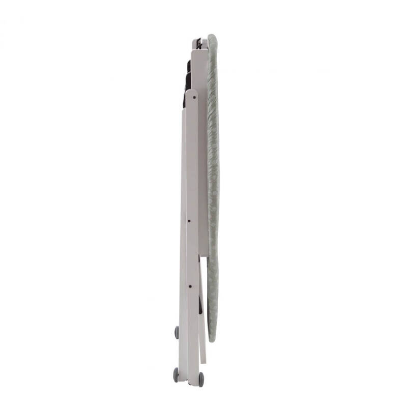 Deska STIROCOMODO posiada szeroką powierzchnię roboczą wykonaną z ocynkowanego i perforowanego metalu, co gwarantuje równomierne rozprowadzanie pary. Zielony pokrowiec, wykonany w 100% z bawełny, odporny jest na wysoką temperaturę i doskonale pochłania parę, zapewniając lepsze rezultaty podczas usuwania zagnieceń. Deska wyposażona jest w uchwyt na żelazko oraz półkę na pranie, co sprawia, że prasowanie jest lepiej zorganizowane i efektywne. Ponadto, wyposażona jest w wygodne kółka, które ułatwiają jej przemieszczanie po domu, zapewniając Ci elastyczność w jej użytkowaniu.