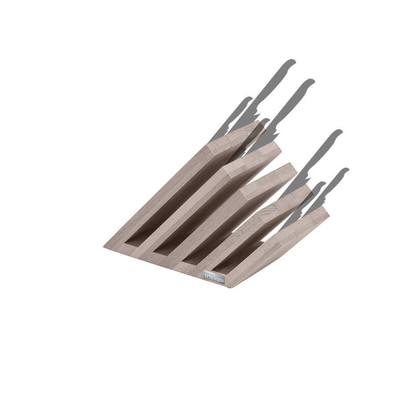 Stojak może pomieścić do 14 noży o maksymalnej długości ostrza 29.5 cm. Wykonany jest z litego drewna bukowego i pokryty specjalnym lakierem dopuszczonym do kontaktu z żywnością.