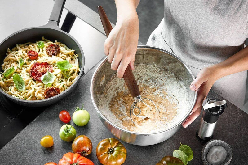 NEDO to niezwykła trzepaczka. Jej solidne pętle ze stali nierdzewnej sprawiają, że mieszanie nawet ciężkich ciast staje się przyjemnością i w mgnieniu oka przynosi doskonałe rezultaty. Ci, którzy chcą przygotować puszysty chleb, świeże makarony, pachnące ciasta i pyszne naleśniki, pokochają NEDO.