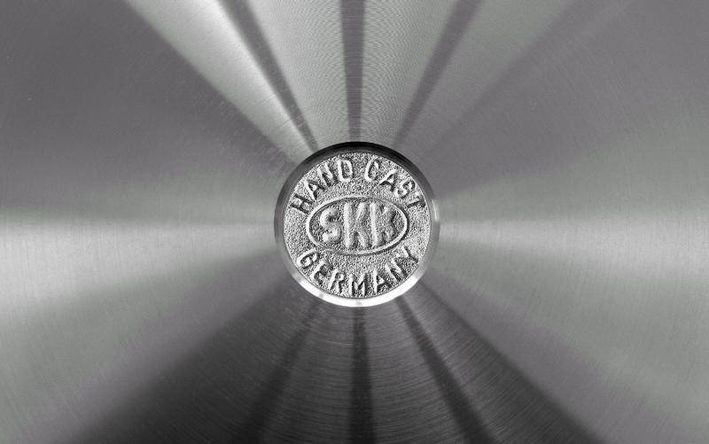 Patelnie niemieckiej firmy SKK to najwższa jakość wśród naczyń z powłokami nieprzywierlnymi. Solidny, wytrzymały, gruby aluminiowy odlew jest wielowarstwowo pokryty tytanem oraz najwyższej jakości powłoką nieprzywieralną Titan Durit Resist.
