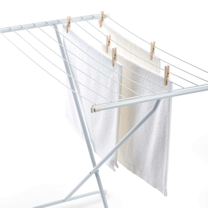 Kompaktowa suszarka na pranie – wygodne suszenie nawet w małych przestrzeniach. Poszukujesz praktycznej suszarki na pranie, która pomieści wszystkie Twoje mokre rzeczy, ale nie zajmie zbyt dużo miejsca? Ta kompaktowa suszarka to idealne rozwiązanie, które umożliwi Ci wygodne suszenie odzieży w każdym zakątku Twojego domu, nawet w bardzo niewielkich pomieszczeniach czy na balkonie. Zapewnia 10 metrów powierzchni do wieszania prania, co pozwala na suszenie sporej ilości koszulek lub ręczników.