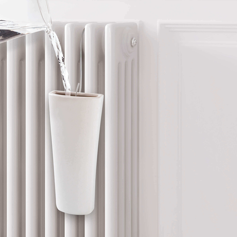 Ten prosty w obsłudze nawilżacz działa na zasadzie parowania wody podgrzewanej przez kaloryfer. Wystarczy napełnić go wodą i zawiesić na grzejniku, a woda zacznie parować, dostarczając wilgoć do powietrza i wspomagając funkcjonowanie Twoich dróg oddechowych.