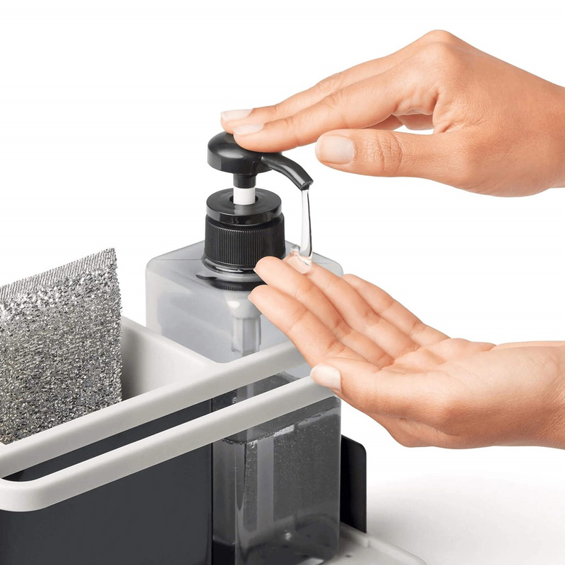 Oto idealne rozwiązanie, które pomoże Ci utrzymać ład i porządek w zlewie kuchennym. Zaprojektowany z myślą o codziennych potrzebach, ten organizer umożliwia przechowywanie niezbędnych akcesoriów, takich jak gąbka czy szczotka do naczyń, które często mają tendencję do gromadzenia się wokół zlewu. Dodatkowo w zestawie znajduje się także dyspenser na mydło w płynie, który ułatwi Ci codzienną higienę dłoni po zakończeniu prac w kuchni.