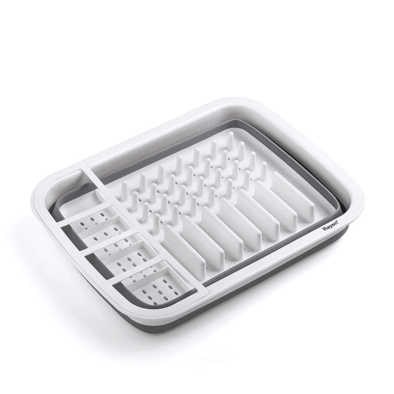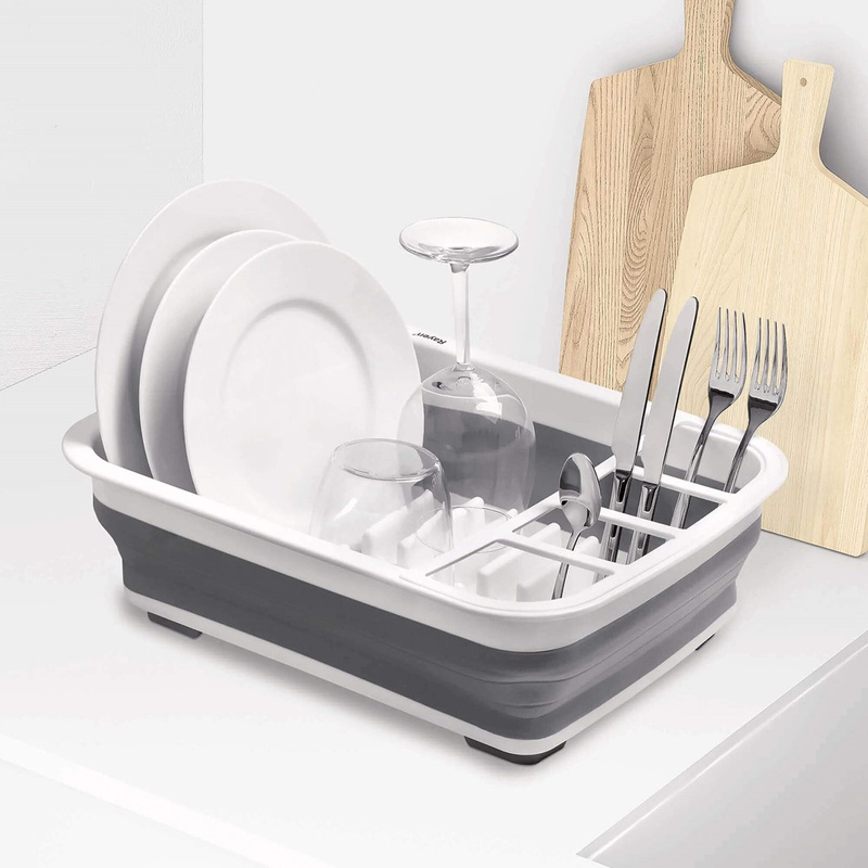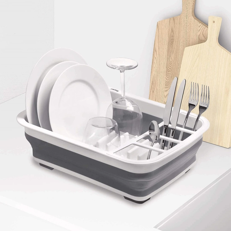 Zaprojektowana z myślą o każdym elemencie Twojej zastawy stołowej, suszarka posiada przemyślane przegródki na talerze, szklanki, kubki, a także osobne przegrody na akcesoria kuchenne i sztućce. Jej prawdziwym atutem jest jednak zdolność do składania. W kilka chwil przekształcasz ją w płaski element, który bez problemu schowasz w szafce lub szufladzie, oszczędzając cenne miejsce w kuchni.
