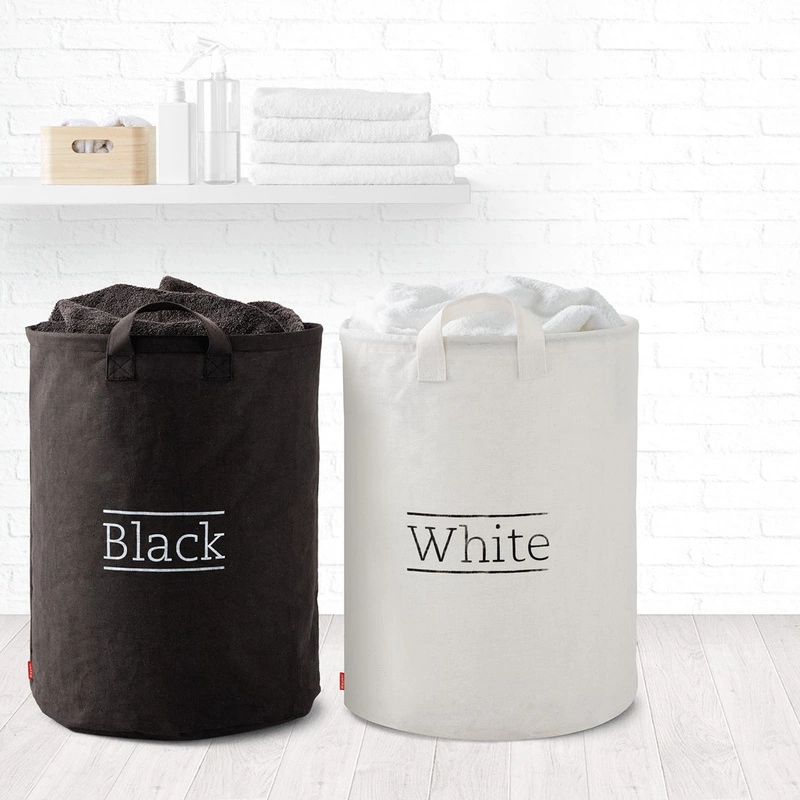 Odkryj wygodę i funkcjonalność naszego zestawu koszy na pranie, stanowiącego esencję każdej domowej przestrzeni! Komplet dwóch koszy w kolorze czarnym i białym zaspokoi oczekiwania nawet najbardziej wymagających użytkowników, doskonale wpisując się w potrzeby rodziny.