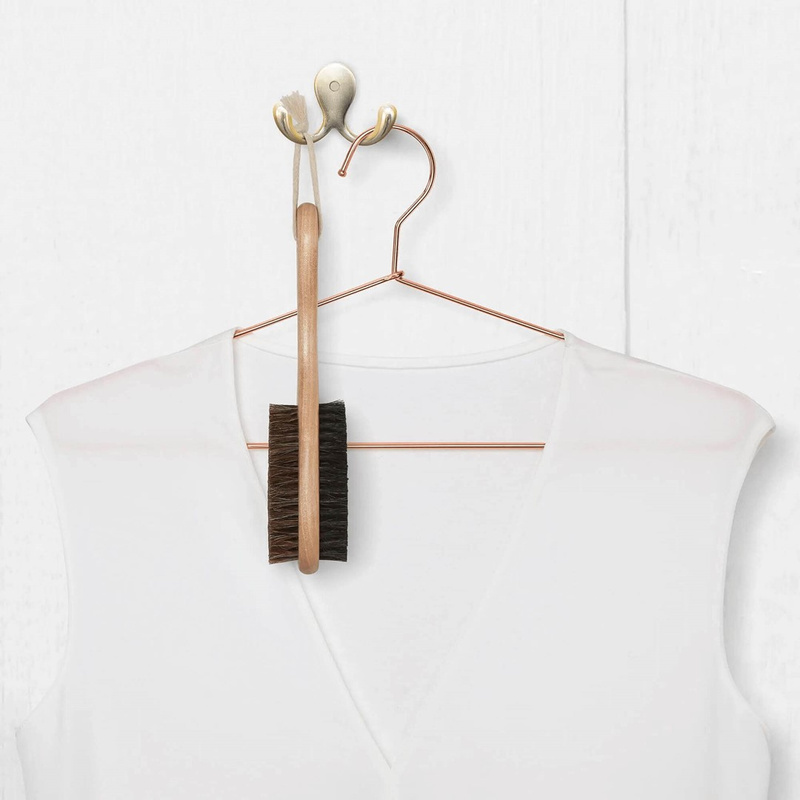 Zestaw 5 wieszaków w kolorze miedzianym – perfekcyjna organizacja w Twojej szafie. Odkryj zestaw wieszaków w eleganckim, miedzianym odcieniu, które gwarantują skuteczne i bezpieczne przechowywanie Twoich ubrań. Specjalna powłoka zapewnia stabilne umiejscowienie odzieży, eliminując ryzyko przypadkowego zsunięcia się ubrań z wieszaka. Ich solidna i lekka budowa umożliwia wieszanie różnych typów odzieży, od letnich bluzek i koszul, po cięższe płaszcze i kurtki.