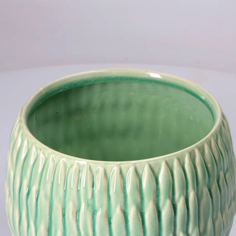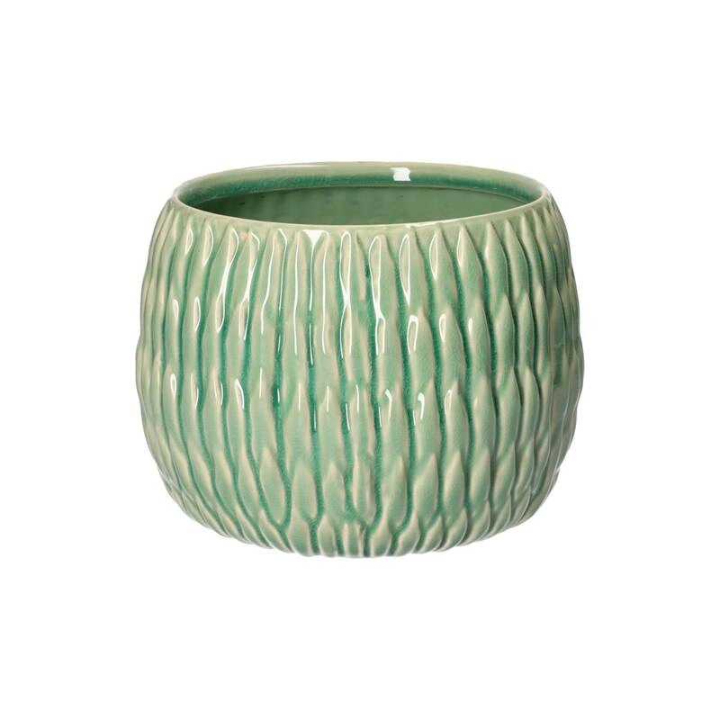 Kolekcja AGAVINA to harmonijne połączenie elegancji i funkcjonalności. Wykonana z wysokiej jakości kamionki, charakteryzuje się subtelną, zieloną glazurą, która dodaje jej naturalnego i wyrafinowanego wyglądu. Każdy element tej serii, od donicy po wazony, jest zdobiony regularnymi żłobieniami, inspirowanymi naturą. Ta wyrazista tekstura tworzy wyjątkowy efekt, nadając przedmiotom trójwymiarowy wygląd.