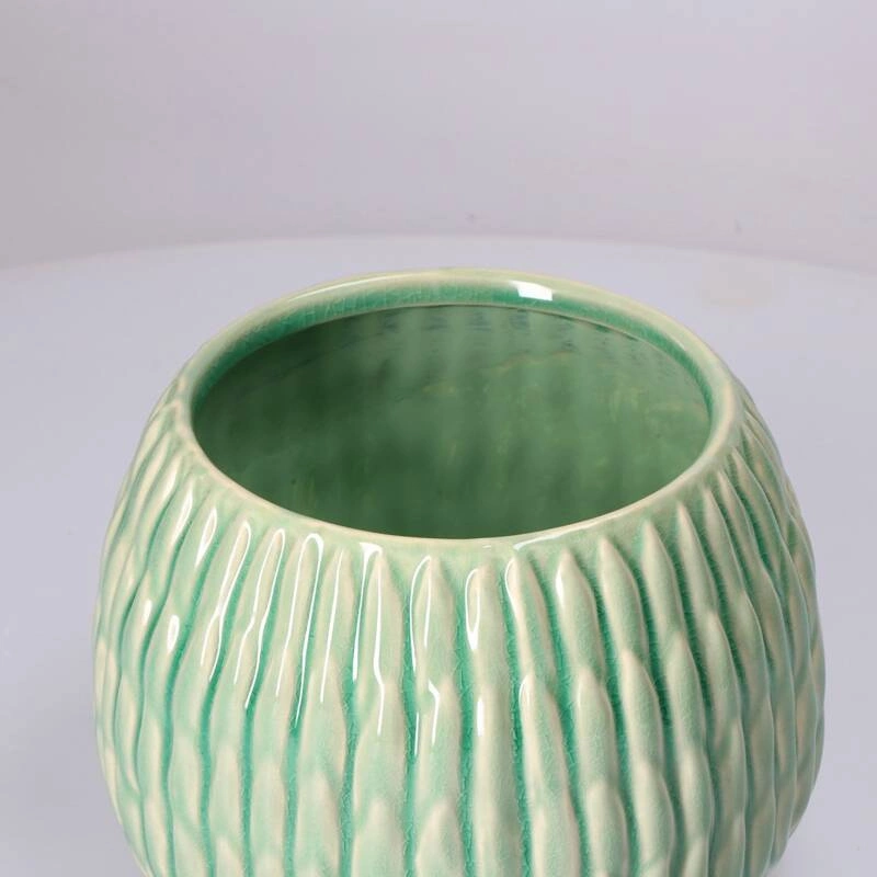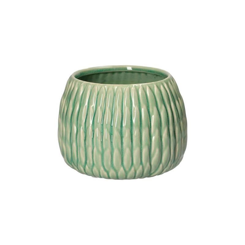 Kolekcja AGAVINA to harmonijne połączenie elegancji i funkcjonalności. Wykonana z wysokiej jakości kamionki, charakteryzuje się subtelną, zieloną glazurą, która dodaje jej naturalnego i wyrafinowanego wyglądu. Każdy element tej serii, od donicy po wazony, jest zdobiony regularnymi żłobieniami, inspirowanymi naturą. Ta wyrazista tekstura tworzy wyjątkowy efekt, nadając przedmiotom trójwymiarowy wygląd.