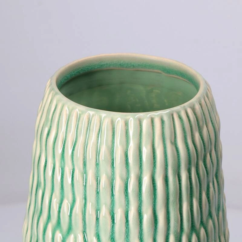Kolekcja AGAVINA to harmonijne połączenie elegancji i funkcjonalności. Wykonana z wysokiej jakości kamionki, charakteryzuje się subtelną, zieloną glazurą, która dodaje jej naturalnego i wyrafinowanego wyglądu. Każdy element tej serii, od donicy po wazony, jest zdobiony regularnymi żłobieniami, inspirowanymi naturą. Ta wyrazista tekstura tworzy wyjątkowy efekt, nadając przedmiotom trójwymiarowy wygląd.
