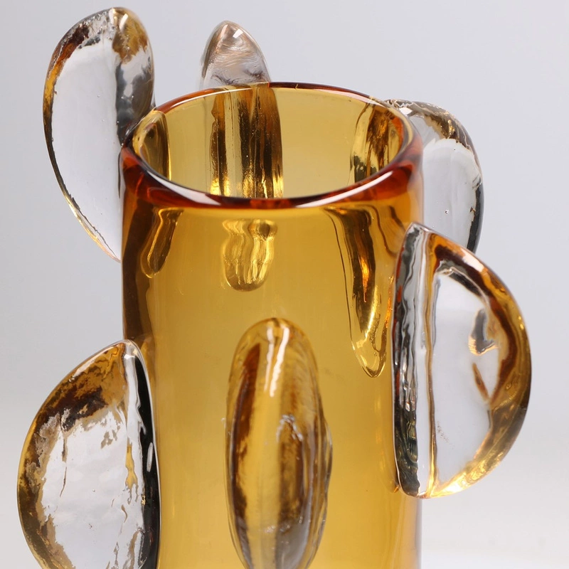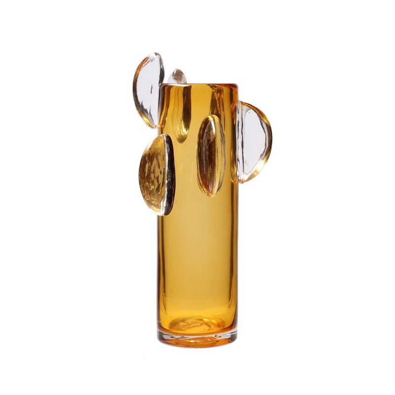 Kolekcja GHIACCIOLI to seria nowoczesnych, szklanych wazonów o unikalnym designie, dostępna w zróżnicowanej gamie kolorystycznej. Każdy wazon w tej kolekcji wyróżnia się oryginalną formą, w której przezroczyste detale harmonijnie kontrastują z głębokimi odcieniami, takimi jak bursztyn czy zieleń. Ta subtelna gra kolorów i kształtów nadaje im elegancji, czyniąc je efektowną dekoracją do każdego wnętrza.