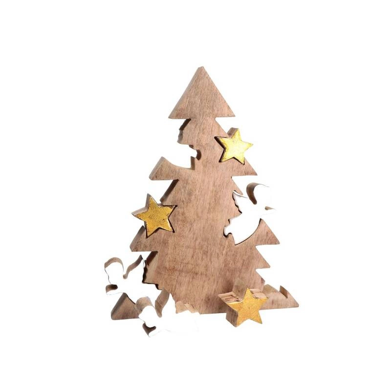 Cechy szczególne- Drewniana choinka z białymi aniołkami i złotymi gwiazdkami