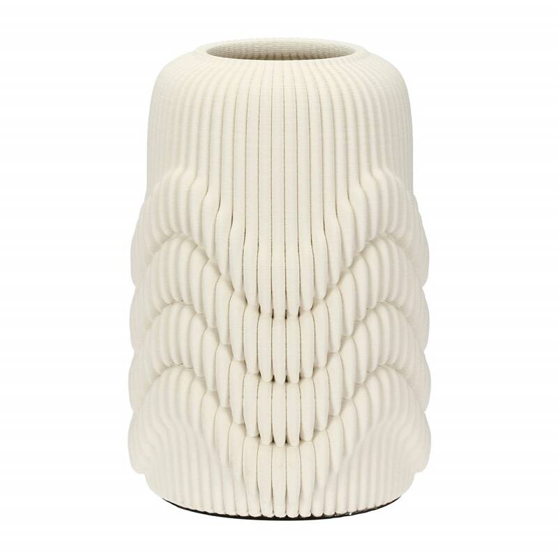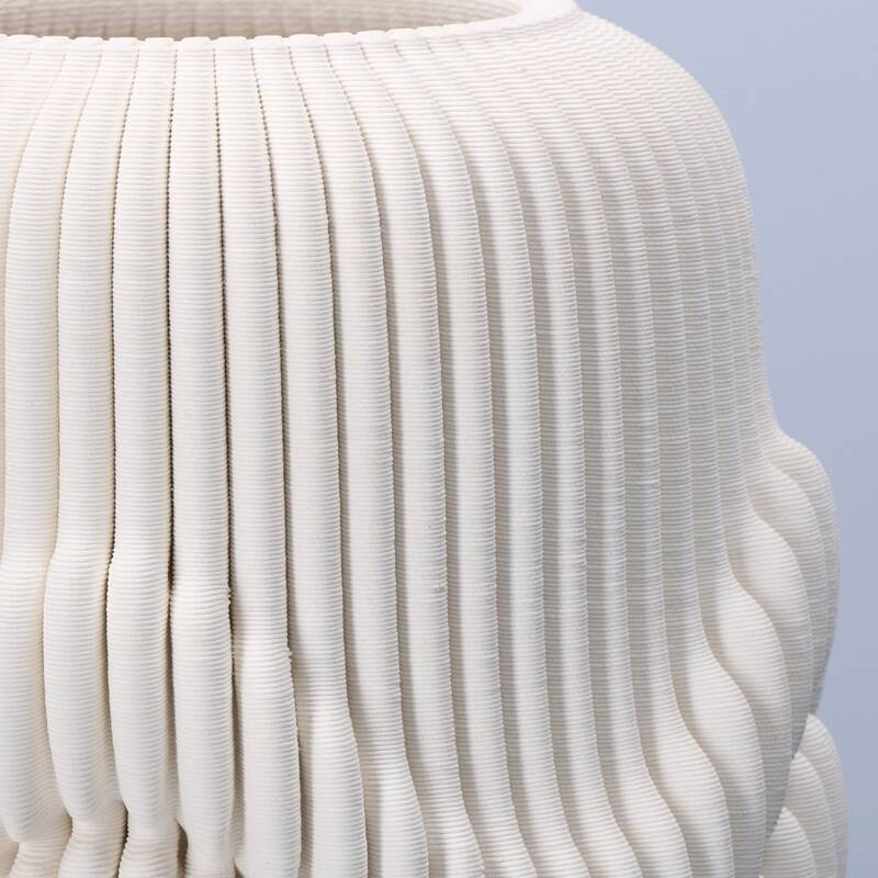 Opis produktuBiały wazon Lino to wyjątkowy element dekoracyjny, który zachwyca swoim wyglądem. Jego design inspirowany jest wyglądem prawdziwej tkaniny, z delikatnymi i regularnymi żłobieniami, które dodają mu niepowtarzalnego uroku. Wykonany ze specjalnej porcelany przy użyciu zaawansowanej technologii druku 3D, wazon charakteryzuje się niespotykaną precyzją i detalami.