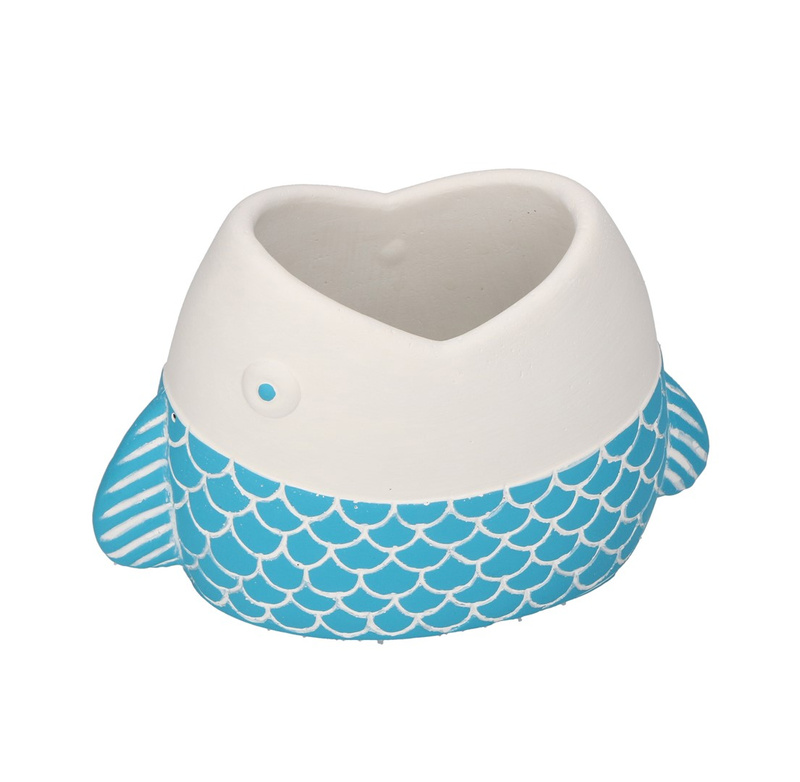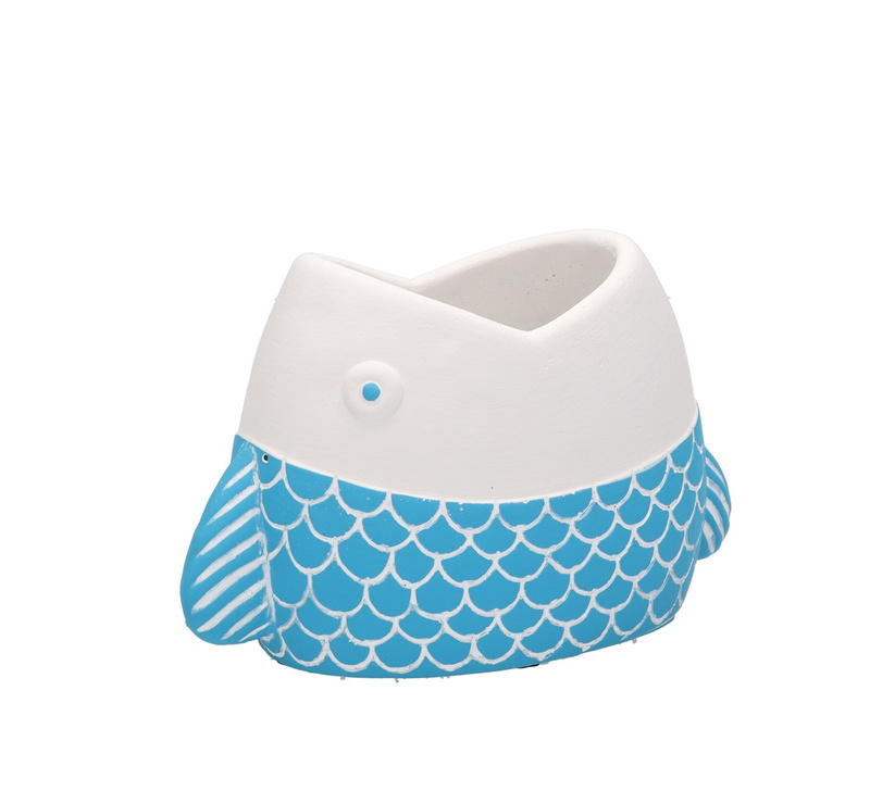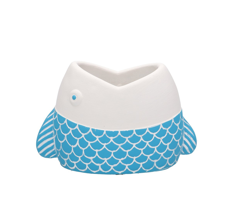 Wazon MARECHIARO to wyjątkowy dodatek do każdego wnętrza, przyciągający wzrok swoją unikatową formą ryby z otwartymi ustami. Wykonany z innowacyjnej żywicy cementowej, gwarantuje trwałość i odporność, a jednocześnie zachowuje lekkość, co ułatwia przenoszenie. Jasnoniebieski kolor utrzymany w morskiej tonacji dodaje świeżości, idealnie komponując się zarówno z klasycznymi, jak i nowoczesnymi aranżacjami.
