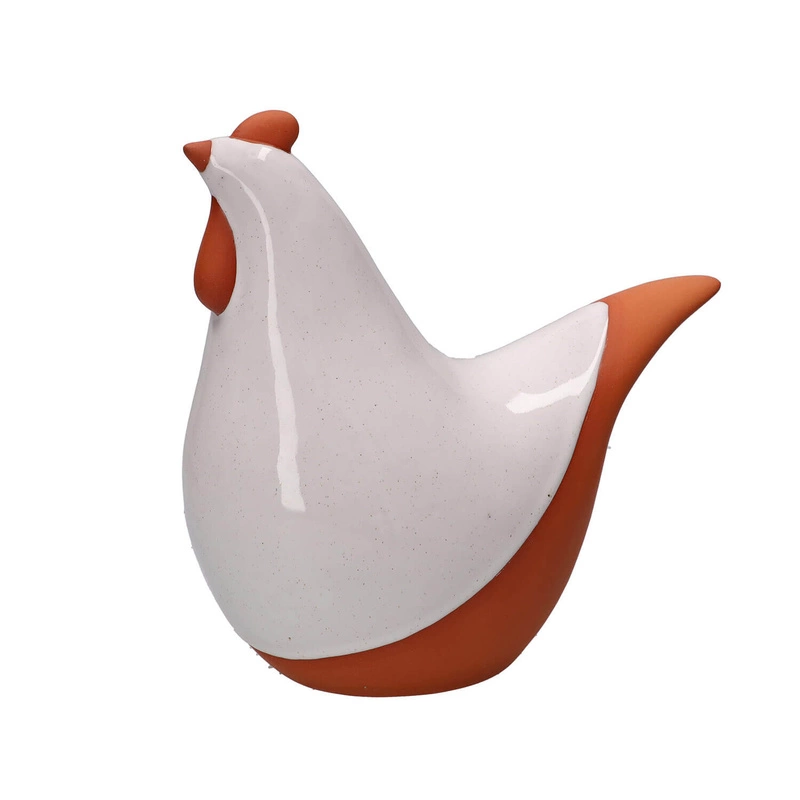 Opis produktuZachwyć się unikalnością ozdób NONSONOCOTTA, przedstawiających kury wykonane z najwyższej jakości dolomitu. Te czarujące figurki to doskonały sposób na dodanie rustykalnego uroku i oryginalności do każdego wnętrza. Delikatne, białe wykończenie z pomarańczowymi akcentami na grzebieniu i ogonie przyciąga wzrok, tworząc ciepłą i przyjemną atmosferę.