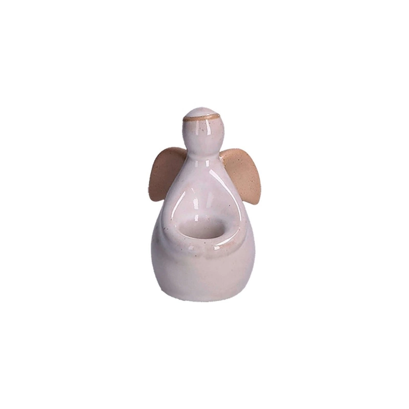 Opis ProduktuKomplet 2 kamionkowych świeczników w kształcie aniołków. Te delikatne dekoracje wprowadzą do Twojego wnętrza zimową atmosferę. Umieść je na stole, komodzie lub półce, by nadać świątecznego charakteru przestrzeni i wzniecić odrobinę blasku.