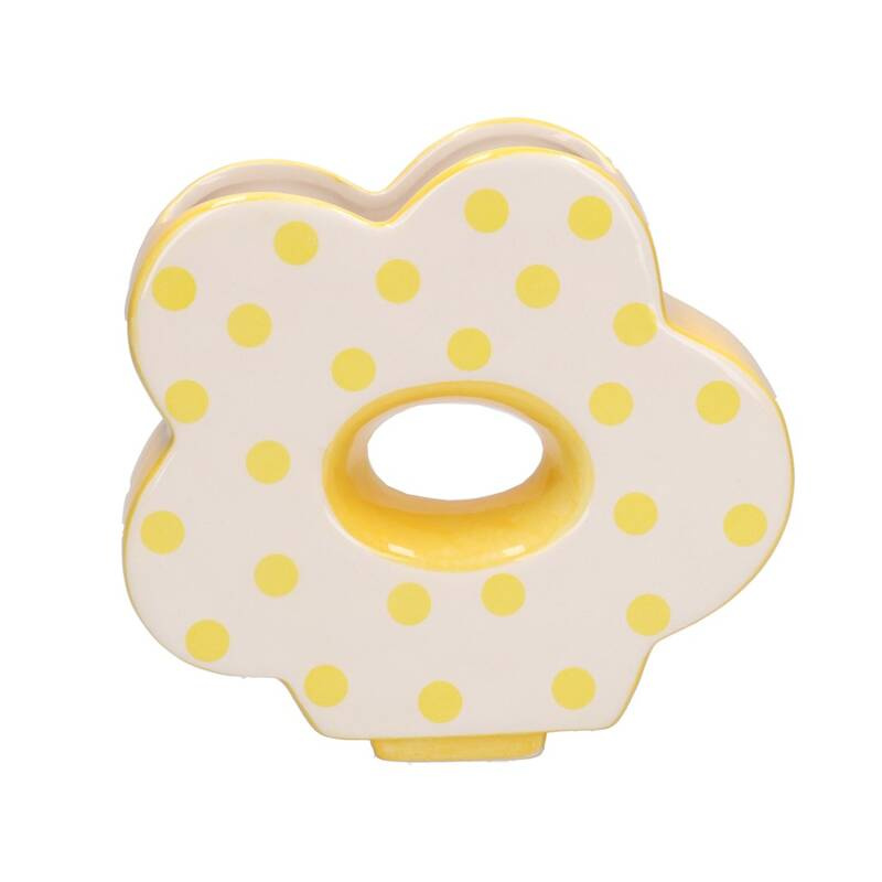 Ten niezwykły wazon wykonany jest z dolomitu i charakteryzuje się wysoką jakością oraz trwałością. Jego design inspirowany jest kształtem stokrotki, co czyni go nie tylko praktycznym, ale także dekoracyjnym elementem każdego domu. Jasnożółty kolor zestawiony z białymi, kropkowanymi płatkami oraz zielonymi elementami przypominającymi łodygę kwiatu, wprowadza do pomieszczenia wiosenną atmosferę.