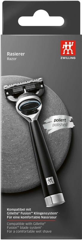 Maszynka do golenia z uchwytem wykonanym z wysokiej jakości żywicy to idealne narzędzie do komfortowego golenia na mokro. Ergonomiczna, stożkowa forma uchwytu zapewnia wysoki komfort użytkowania, a chromowane akcenty podkreślają wartość i jakość produktu ZWILLING. Użyte materiały są trwałe i odporne na wodę, co umożliwia łatwe czyszczenie.