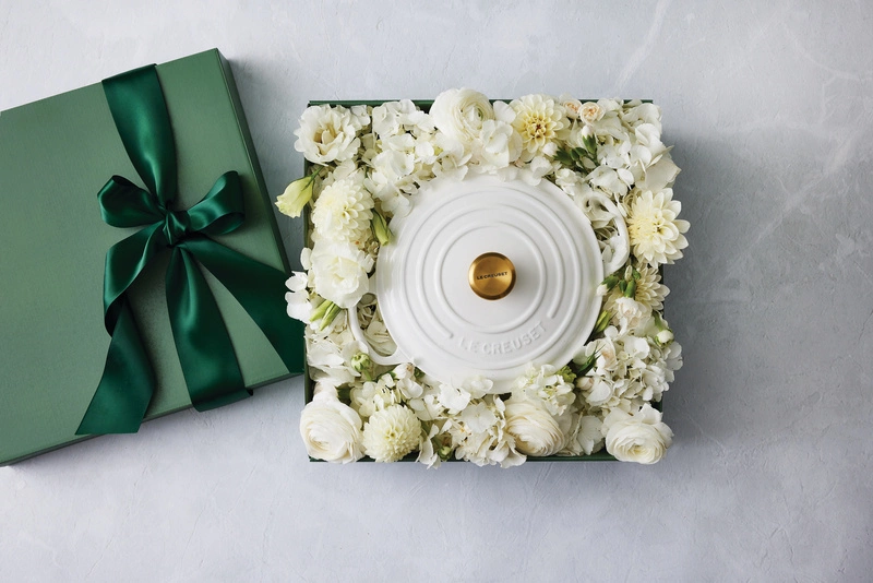 Nowa kolekcja naczyń żeliwnych Le Creuset w kolorze białym to połączenie nowoczesności i elegancji, które trudno przeoczyć. Biel, jako najczystszy z kolorów, stanowi doskonałe tło, idealnie podkreślając inne barwy. Jej uniwersalny charakter sprawia, że świetnie komponuje się z każdą aranżacją kuchni – od minimalistycznych wnętrz, przez klasyczne, aż po te bardziej swobodne. Dodatkowo, złote pokrętło pokrywki wprowadza subtelny akcent luksusu, który podkreśla elegancję tej kolekcji i nadaje jej wyjątkowego charakteru.