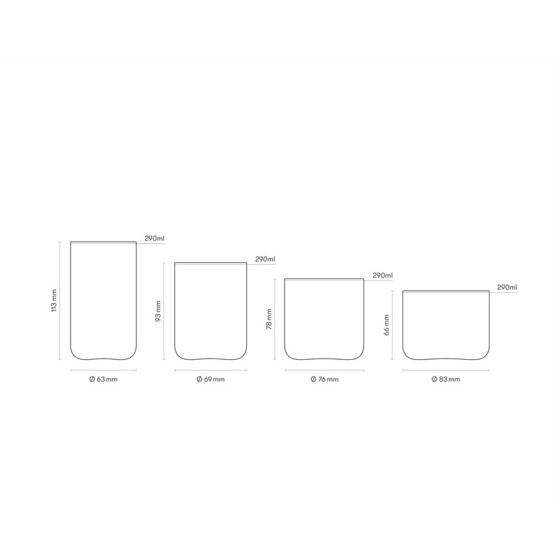 Pomimo różnych wymiarów, szklanki mają dokładnie tę samą objętość 290 ml. Idealne do wody, mocktaili, koktajli lub jako szklany zestaw upominkowy.