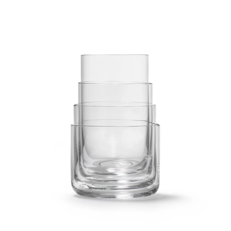 Te cienkie szklanki zostały znakomicie zaprojektowane i wykonane ze szkła kryształowego. Występują w czterech różnych kształtach, tworząc zabawną koncepcję projektową łączącą w sobie jedność i indywidualność. Oznacza to również, że nie są to przeciętne szklanki do układania w stosy. Zamiast tego wkładasz je jedeną w drugą, aby zminimalizować miejsce na półce.