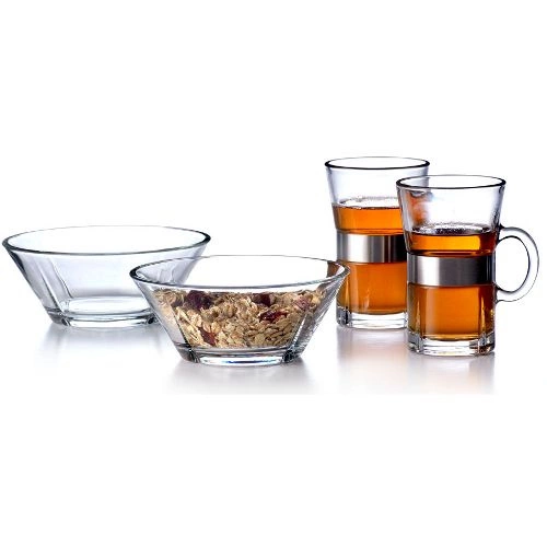 - szkło bezołowiowe, stal nierdzewna (szklanki)