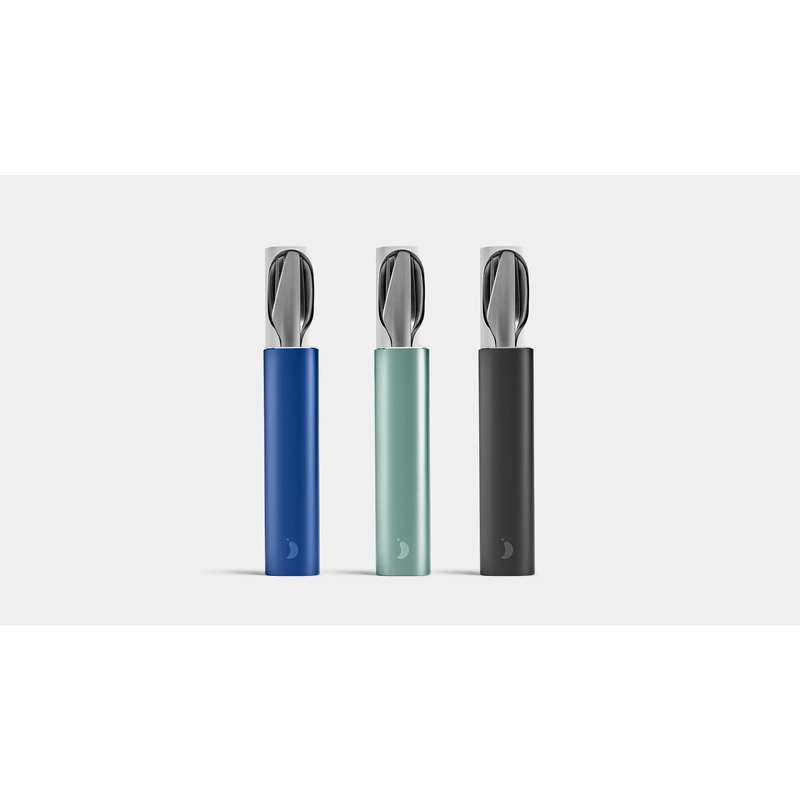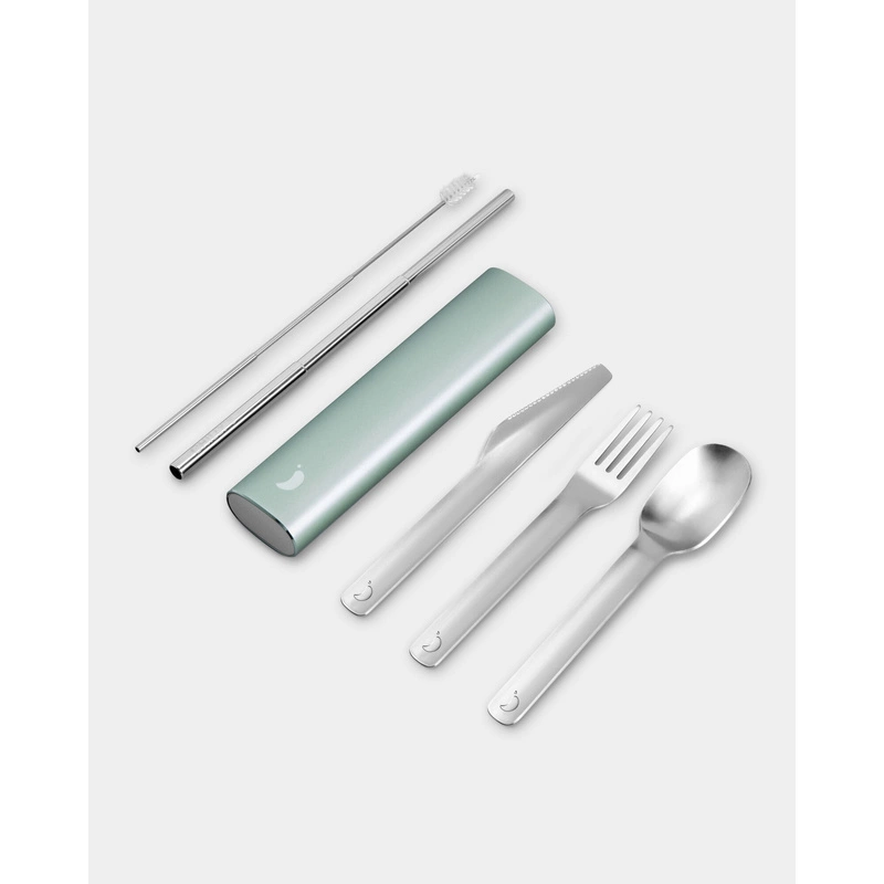4-częściowy pełnowymiarowy zestaw sztućców. Zawiera widelec ze stali nierdzewnej, ostry nóż, łyżkę i teleskopową słomkę wraz ze szczoteczką do mycia. Wszystko jest zapakowane w eleganckiej aluminiowej obudowie- schludne przechowywyanie sztućców w kompaktowy i funkcjonalny sposób. Można myć w zmywarce, co ułatwia czyszczenie. Z możliwością grawerowania