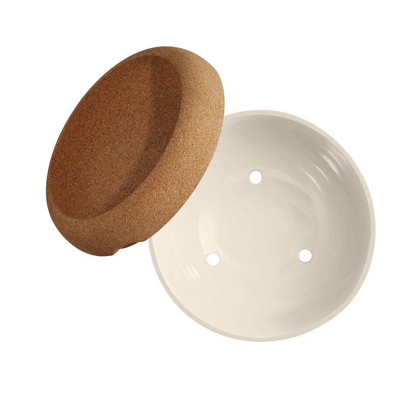 Stworzona według sprytnego projektu i przy użyciu naturalnych materiałów, idealna do przechowywania świeżych produktów – głęboka misa do przechowywania działa na 2 poziomach. Pokrywka z korka służy jako miska na owoce i zapewnia elegancką prezentację. Ceramiczna podstawa zapewnia miejsce do przechowywania cebuli, ziemniaków i innych warzyw, produktów wymagających ukrycia ich przed promieniami słońca. Brak światła pod pokrywką spowalnia kiełkowanie, a 3 małe otwory zapewniają odpowiednią wentylację. W połączeniu z izolacyjnymi właściwościami korka i ceramiki, głęboka miska do przechowywania Emile Henry odtwarza warunki podobne do tych panujących w piwnicy, w samym sercu Twojej kuchni. Górna część korka z troską utrzymuje nawet najdelikatniejszy owoc. Oparcie na powierzchni korka zmniejsza prawdopodobieństwo zepsucia się owocu w miejscu kontaktu. Z doświadczenia wiemy, że korek pomaga powstrzymać muchy owocowe i wchłania wilgoć, którą mogą uwolnić owoce. To właśnie sprawia, że nasza misa do przechowywania jest tak wyjątkowa, a dodatkowo zauroczy Cię jej elegancki wygląd. Wszystkie produkty Emile Henry są produkowane we Francji, z zachowaniem najwyższych standardów już od 1850 roku. Produkt jest objęty dziesięcioletnią gwarancją producenta – po zarejestrowaniu zakupu. Logistyka Pakowane po 1szt. Wymiary opakowania zbiorczego: PPC : 1 Length : 29cm / 11.41in Width : 28cm / 11.02in Height : 17cm / 6.69in Wymiary pojedynczego przedmiotu: Weight : 2,23kg / 4.91Lb Length : 27cm / 10.55in Height : 18,5cm / 7.28in Inner length : 25,5cm / 10.03in Inner height : 13cm / 5.11in Max capacity : 4,7L / 158.92OZ