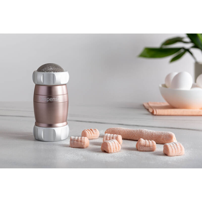 Dzięki schludnemu i wyrafinowanemu kształtowi dozownik jest dodatkiem do ekspozycji, pasującym do stylu Twojej kuchni i cennym sprzymierzeńcem w przygotowywaniu świeżego makaronu i ciasteczek!