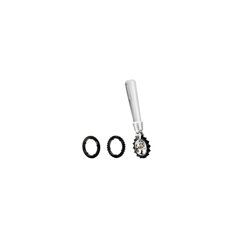 Kształty zostały zaprojektowane tak, aby zapewnić maksymalną ergonomię: uchwyt z anodyzowanego aluminium, dostępny w 7 kolorach, zapobiega ślizganiu się dłoni i umożliwia pewny chwyt w różnych pozycjach.