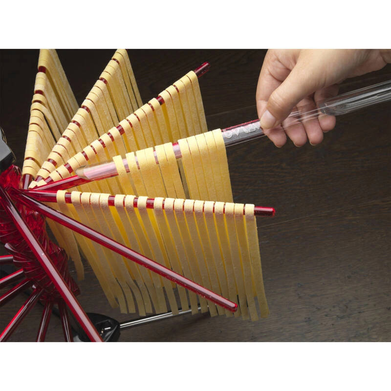 Tacapasta to świetny system do suszenia makaronu: ma 16 ramion, które mogą pomieścić do 2 kilogramów świeżego, długiego makaronu. W centralnej kolumnie mieści się wyjmowany drążek – strategiczne narzędzie do zbierania makaronu prosto z maszyny aby wygodnie powiesić makaron na ramionach do wyschnięcia.