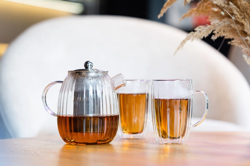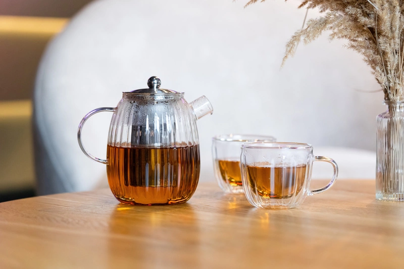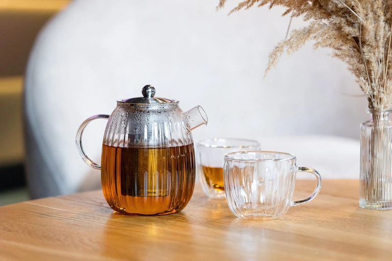 Dzbanek szklany do herbaty ze stalowym filtrem 1L Tulip marki Vialli Design.