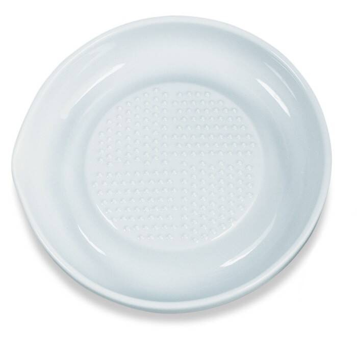 - tarka w całości wykonana z ceramiki cyrkonowej, - doskonala do tarcia zarówno imbiru, gałki muszkatołowej, warzyw, owoców jak i do twardych serów takich jak parmezan oraz czekolady czy innych produktów, - do okoła rowek zbierający tarte owoce i warzywa, - dzióbek do odlewania powstałego soku, - od spodu antypoślizgowe silikonowe zabezpieczenie, - można myć w zmywarce. Wymiary: 16 cm (śr.), 8,5 cm (średnica pow. trącej) Materiał: ceramika Kolor: biały Kolekcja: Kitchen Accessories
