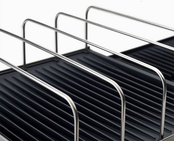 - żebrowana powierzchnia pomaga szybciej osuszyć naczynia i odprowadza wodę,