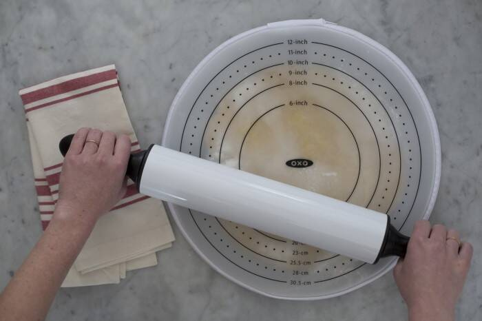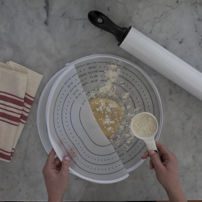 - miara pomaga w idealnym rozwałkowaniu ciasta na pizzę lub inne wypieki,