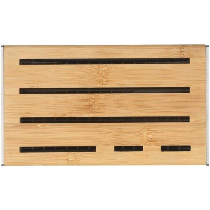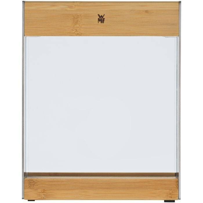 Blok na noże WMF: - ze szczelinami na max. 9 noży, - obudowa drewniano-stalowa, - ma przezroczyste części eksponujące ostrza, - nie nadaje się do nożyczek i ostrzałek, - czyścić ręcznie.