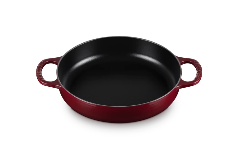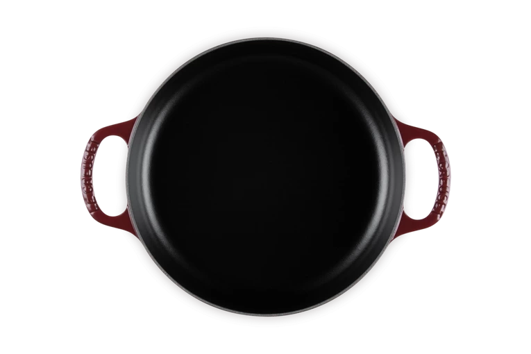 Uniwersalna patelnia Le Creuset do codziennego użytku ma dużą głębokość i szeroką powierzchnię i są idealne do pieczenia, smażenia, duszenia sosów i innych potraw.