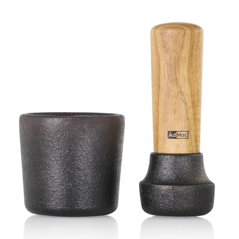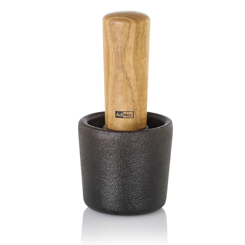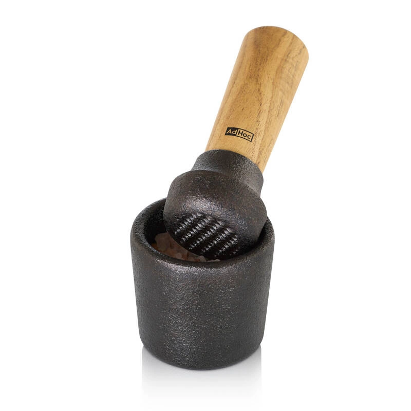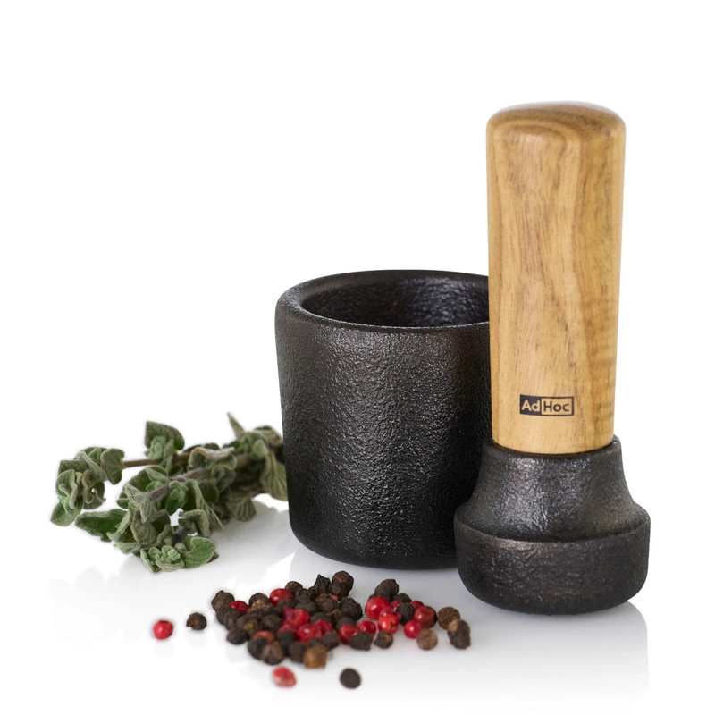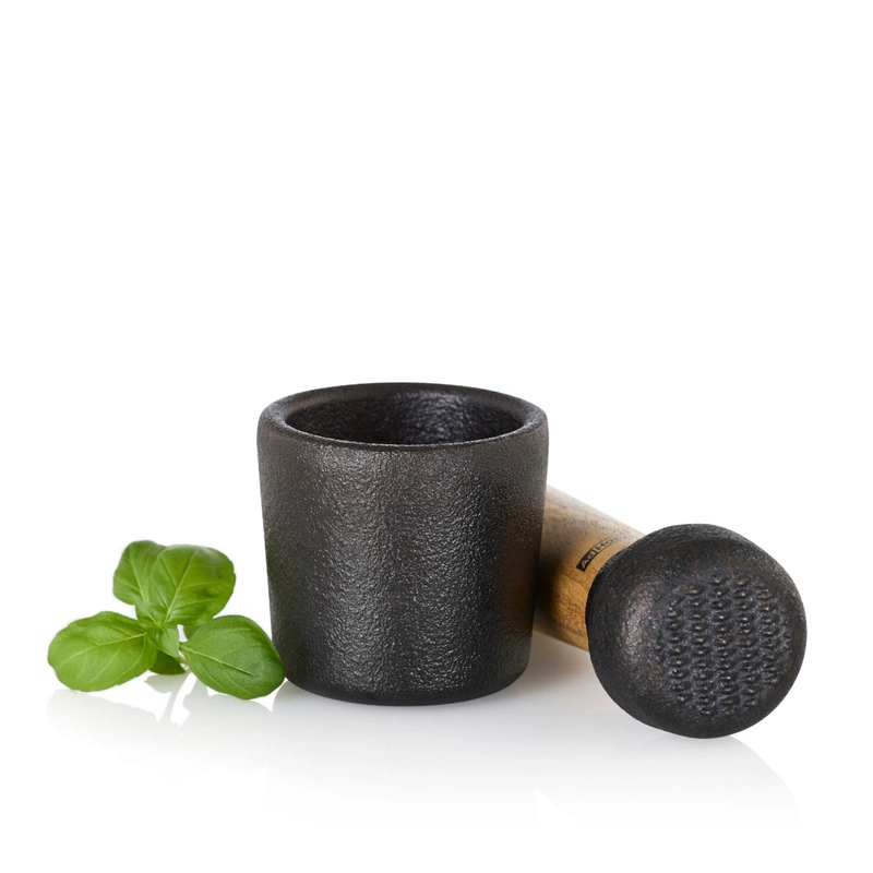 Kompaktowy moździerz z żeliwną misą i solidnym tłuczkiem z wypustkami, w którym łatwo zmiażdżysz, skruszysz i zetrzesz pieprz, sól oraz inne przyprawy i zioła wydobywając z nich pełnię smaków i aromatów.