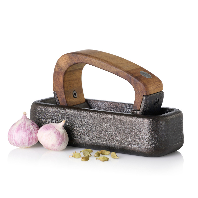 Moździerz na biegunach ROCCA to kompaktowy moździerz z żeliwną misą i solidnym tłuczkiem, w którym łatwo zmiażdżysz, skruszysz i zetrzesz pieprz, sól oraz inne przyprawy i zioła wydobywając z nich pełnię smaków i aromatów.